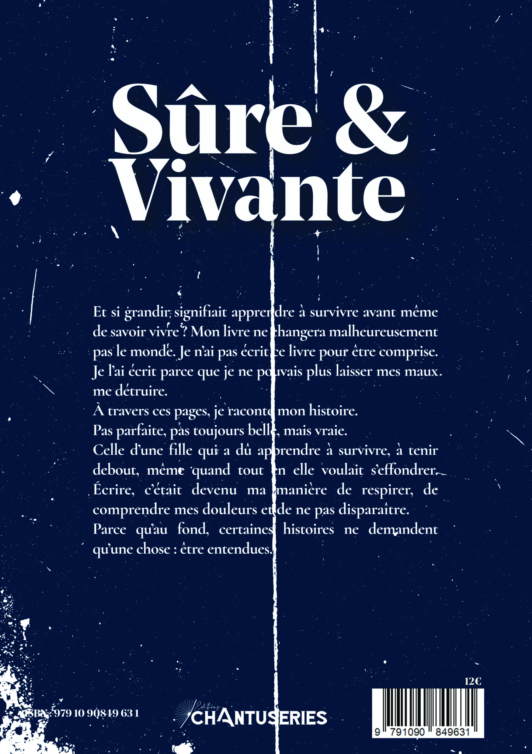 Et si grandir signifiait apprendre à survivre avant même de savoir vivre ? Mon livre ne changera malheureusement pas le monde. Je n’ai pas écrit ce livre pour être comprise. Je l’ai écrit parce que je ne pouvais plus laisser mes maux me détruire. À travers ces pages, je raconte mon histoire. Pas parfaite, pas toujours belle, mais vraie. Celle d’une fille qui a dû apprendre à survivre, à tenir debout, même quand tout en elle voulait s’effondrer. Écrire, c’était devenu ma manière de respirer, de comprendre mes douleurs et de ne pas disparaître. Parce qu’au fond, certaines histoires ne demandent qu’une chose : être entendues.